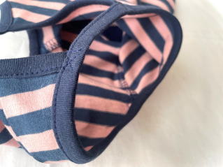 ★裾リブ部分はめくり上がらないよう、少し内に締まるように縫製しています。