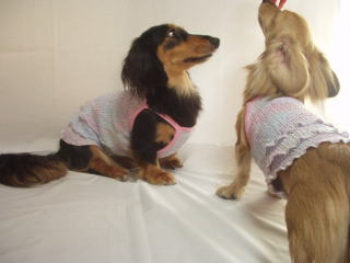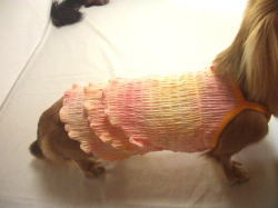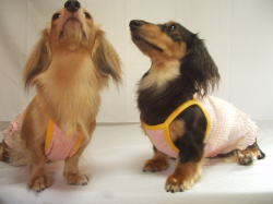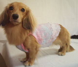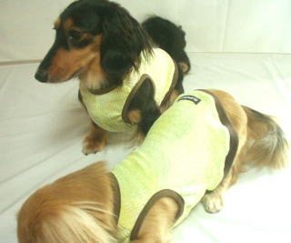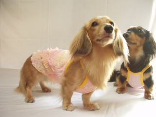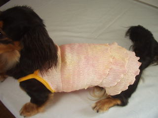 ![]() ワンピースタイプには、前身ごろに1本 後見ごろに2本のゴムを入れています |