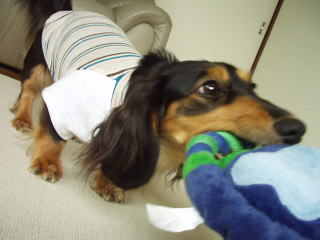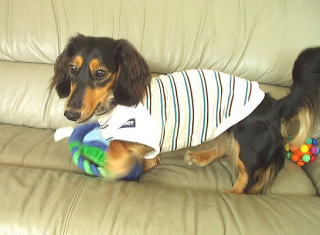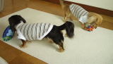 ![]() ワンちゃんの前足脇部分はデリケート。 お袖の縫い合わせはボコッと膨らまないような 手順と方法で縫製しています。 |