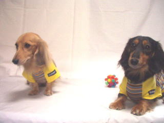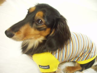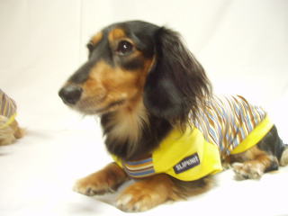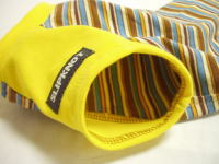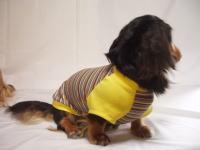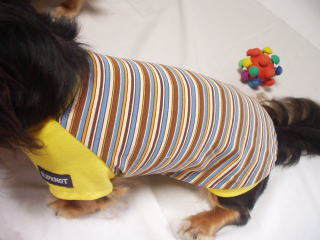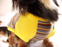 | ★マルチカラーのボーダー素材と、元気のでるレモン色の無地素材が絶妙にマッチ♪ ストレッチ素材だから、着脱がしやすく、ワンちゃんの着心地も満点!! お部屋着にしてもOKなお洋服です。 |