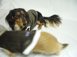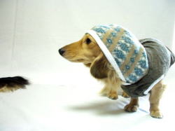 ![]() ワンちゃんの首に負担がかからないよう フードは一枚仕立てにしています |