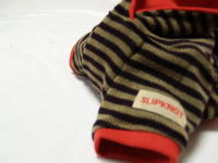 ![]() エリがずれてだらしなくならないよう 足が抜けにくいよう、オリジナルのパターンで 製作しています。 |