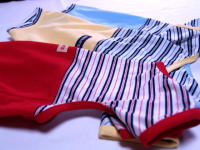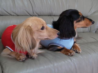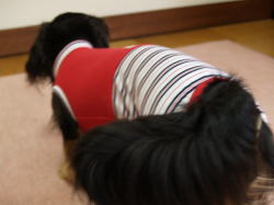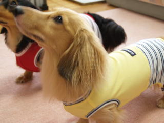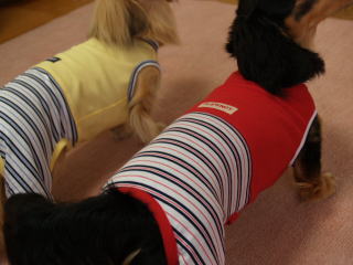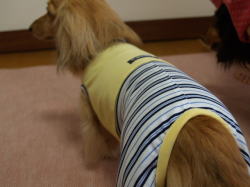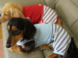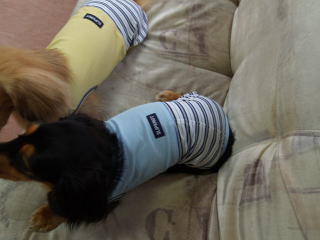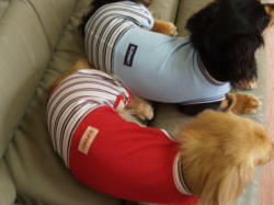 また、アレルギー体質のワンちゃんや皮膚に疾患を持っているワンちゃんのためにも お散歩&お部屋着として是非着用させてあげてください。 ルーミィは、室内での長時間の着用を考え、肌触りの良いボーダー素材をボトムに使用しています。 お出かけ時での着用も考え、無地との切り替えデザインでオシャレに仕上げています(*^_^*) |