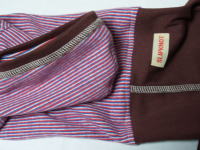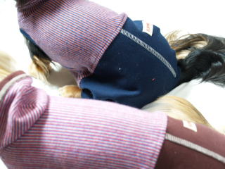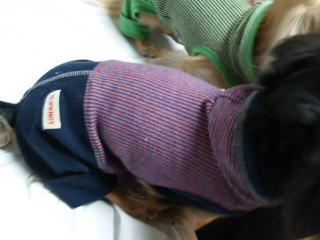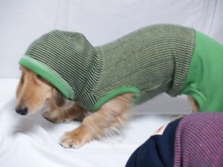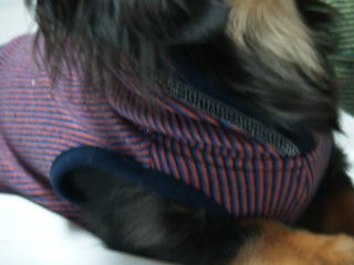 ストライプ部分 ウール50% コットン50% 起毛タイプとスムースタイプをプレーティングした素材です。 手触りがよく、中肉なのに防寒に優れた、ワンちゃんの為のような素材です♪ ![]() 生地表側・起毛タイプ 生地裏側・スムースタイプ 無地部分 コットン95% ポリウレタン5% 伸縮性に優れた素材です。 |