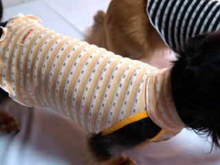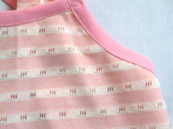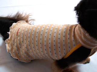 身頃 コットン80% ポリエステル20% 針抜き柄があり、とっても通気性のいい素材です。触りの柔らかく、ワンちゃんも着心地満点♪ ![]() キャミ・スソリブ部分 コットン95% ポリウレタン5% とてもしっかりしたリブ素材です。お洗濯でも伸縮しづらい素材です。 |