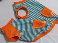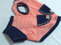 ボーダー部分 コットン100% 薄手だけれど、とってもしっかりした触りの柔らかい素材です。 はっきりしたボーダーの上下に、かすれた色のボーダーがあります。 ![]() 無地部分 ポリエステル80% アクリル20% とっても伸縮性の優れたリブ。高級感ある光沢素材です。 合繊のため、高温でのアイロンはお避け下さい。 |