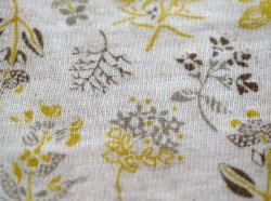 | 柄部分 コットン90% ポリエステル10% ソフトタッチですが、とてもしっかりした生地です ハーブの葉のプリントは、すごく個性的♪ 無地部分 コットン95% ポリウレタン5% とてもしっかりしたリブ素材です。お洗濯でも伸縮しづらい素材です。 |