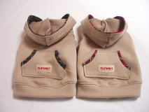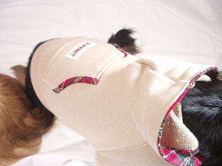 ★前たてとフードのまわりに チェック生地。 フード付けはジャケット仕様