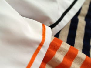 | 身頃 コットン80% ポリエステル20% 透け感のあるガーゼタッチの薄手素材 ソフトな肌触りですが丈夫な生地です セーラー コットン80% ポリエステル20% シワになりずらいシャツ素材です 伸縮性はありません。 |