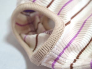 ★ 裾リブ部分はめくり上がらないよう、少し内に締まるように縫製しています。