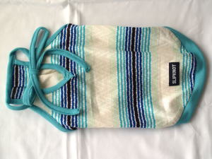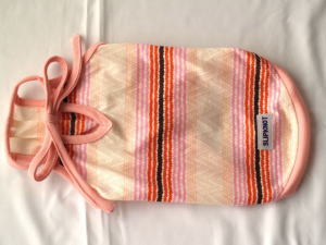 首のヒモは縫い付けではありませんので ある程度調節できます。