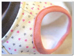 背中スソ近くにピンクとグレーの
