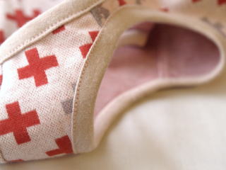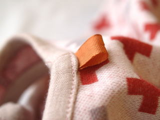 ★裾リブ部分はめくり上がらないよう、少し内に締まるように縫製しています。