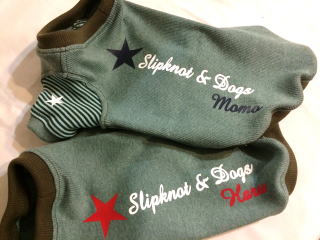 ワンちゃんのお名前を背中に無料でプリントいたします。