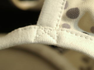★裾リブ部分はめくり上がらないよう、少し内に締まるように縫製しています。
