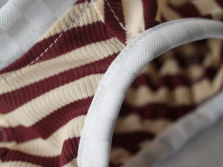 ★裾リブ部分はめくり上がらないよう、少し内に締まるように縫製しています。