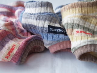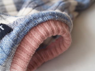 ★裾リブ部分はめくり上がらないよう、少し内に締まるように縫製しています。