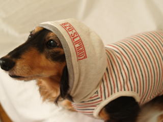 ※ ワンちゃんの首の長さによっては、フードを被られない場合がございます。エリのデザインとお考えください。