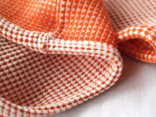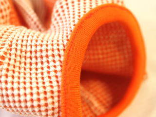 表面が格子状のように凹凸模様があるワッフル編みです。