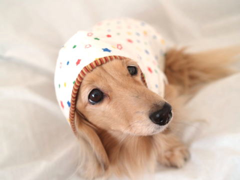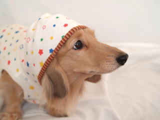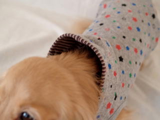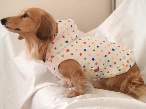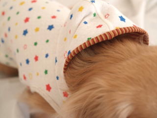 ※ワンちゃんの首の長さなどによってフードを被りづらい場合がございます。襟のデザインとしてお考えください。