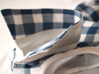★裾リブ部分はめくり上がらないよう、少し内に締まるように縫製しています。