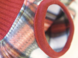 ★裾リブ部分はめくり上がらないよう、少し内に締まるように縫製しています。