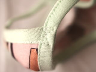 ★裾リブ部分はめくり上がらないよう、少し内に締まるように縫製しています。