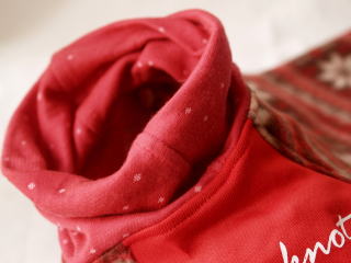 薄手のソフトな生地を使用し、袋編みのロングエリにしております。その為、4通りの襟のデザインをお楽しみいただけます。