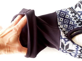 ★裾リブ部分はめくり上がらないよう、少し内に締まるように縫製しています。