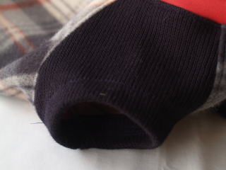 ★裾リブ部分はめくり上がらないよう、少し内に締まるように縫製しています。