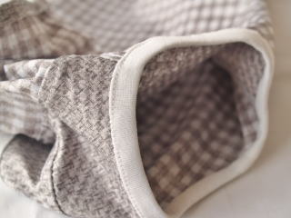 ★裾リブ部分はめくり上がらないよう、少し内に締まるように縫製しています。