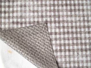 かすれたチェック柄と、カゴを編んだようなプリントの