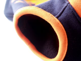 ★裾リブ部分はめくり上がらないよう、少し内に締まるように縫製しています。