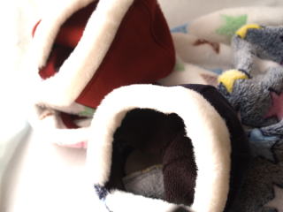光に反射して、上品なラメ入りのように見えるフェイクファーです