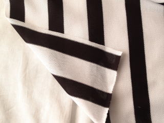 縦横両方向に伸びる珍しいカノコ編み(ポロシャツなどの編地)