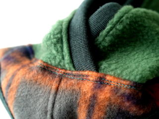 ★裾リブ部分はめくり上がらないよう、少し内に締まるように縫製しています。