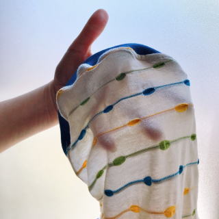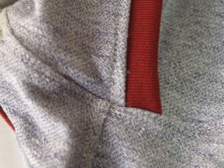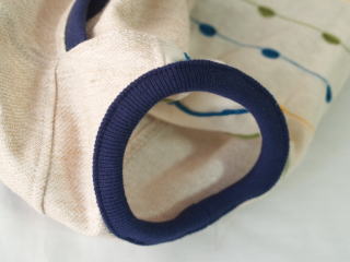 ★裾リブ部分はめくり上がらないよう、少し内に締まるように縫製しています。