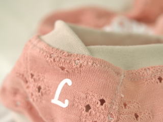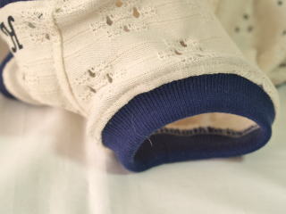 ★裾リブ部分はめくり上がらないよう、少し内に締まるように縫製しています。