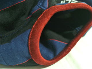 ★裾リブ部分はめくり上がらないよう、少し内に締まるように縫製しています。