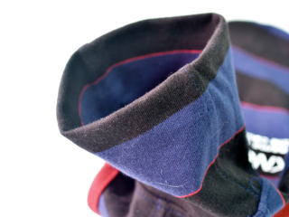 また、袋縫いになっておりますので、折って、タートルネックにもなります。