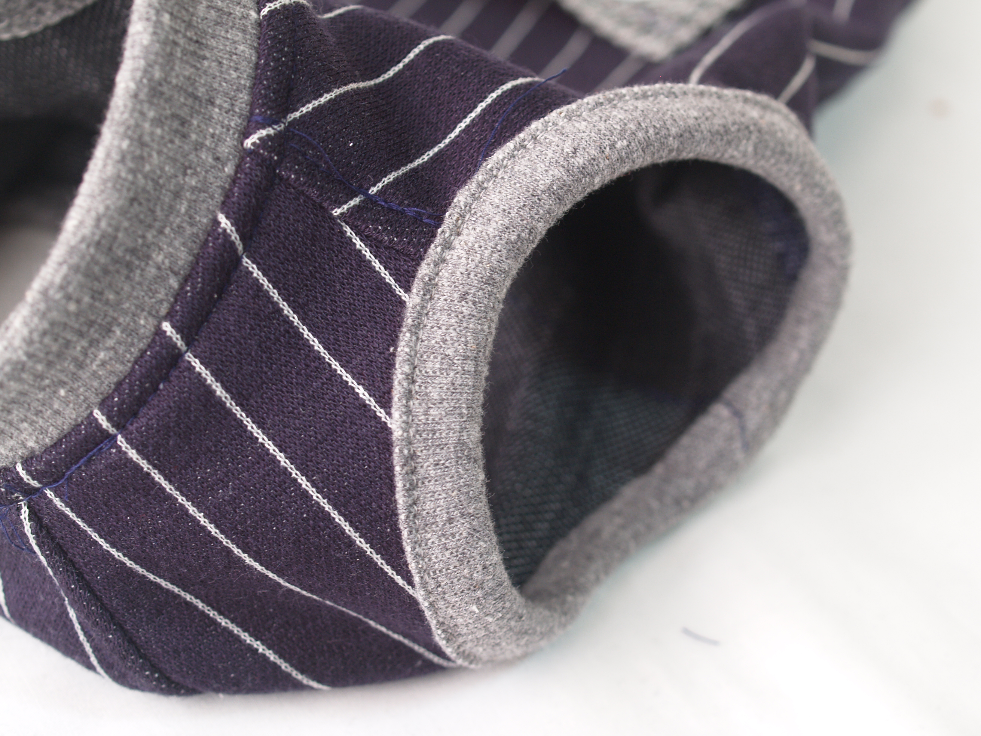 ★裾リブ部分はめくり上がらないよう、少し内に締まるように縫製しています。