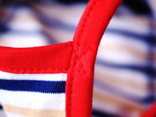 ★裾リブ部分はめくり上がらないよう、少し内に締まるように縫製しています。