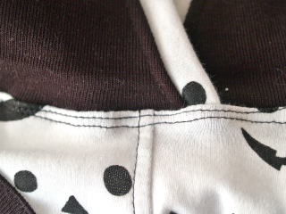 フードの前身ごろ縫い合わせ部分は