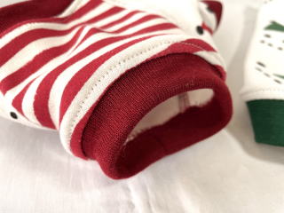 ★裾リブ部分はめくり上がらないよう、少し内に締まるように縫製しています。