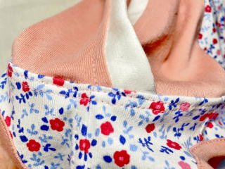 ★裾リブ部分はめくり上がらないよう、少し内に締まるように縫製しています。