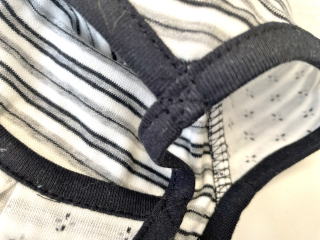 ★裾リブ部分はめくり上がらないよう、少し内に締まるように縫製しています。