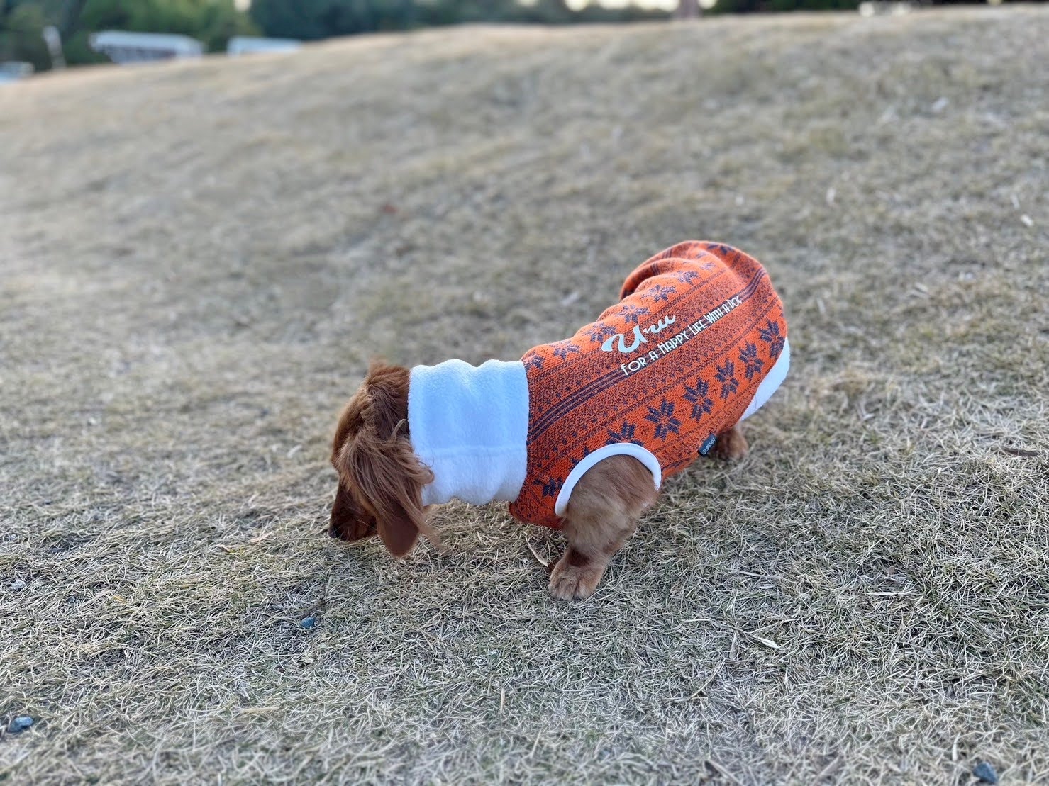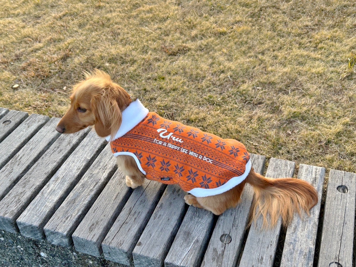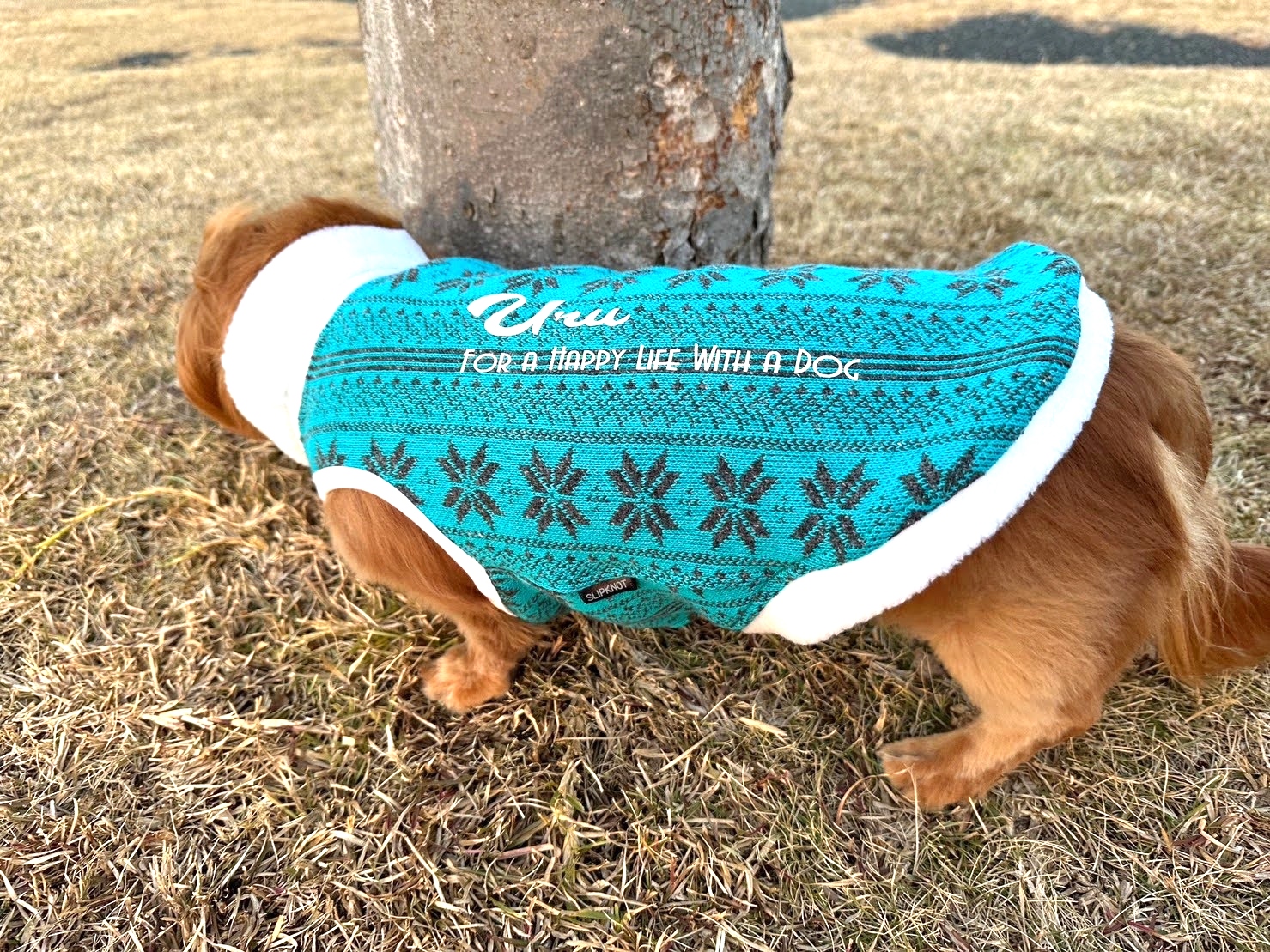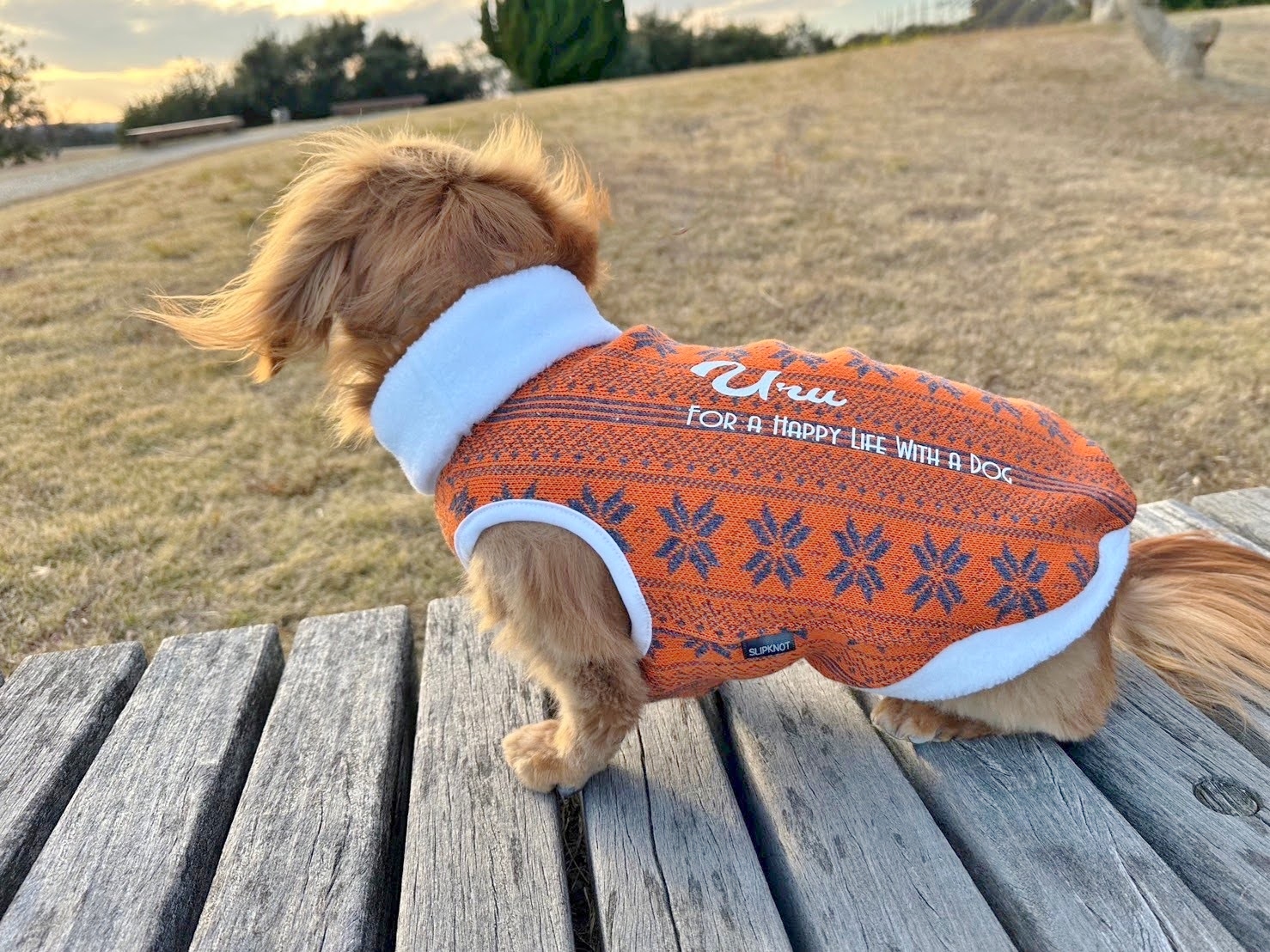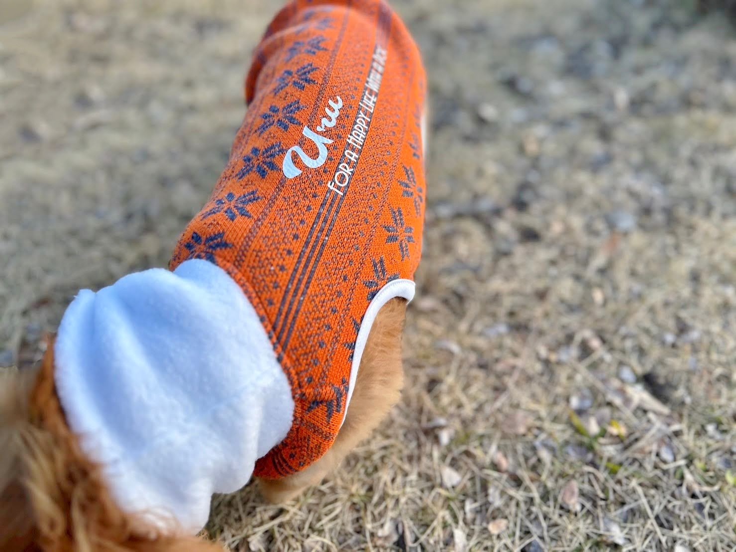 背中に ワンちゃんのお名前をプリントいたします。