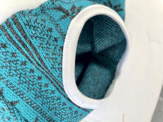 ★裾リブ部分はめくり上がらないよう、少し内に締まるように縫製しています。