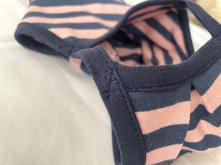 ★裾リブ部分はめくり上がらないよう、少し内に締まるように縫製しています。