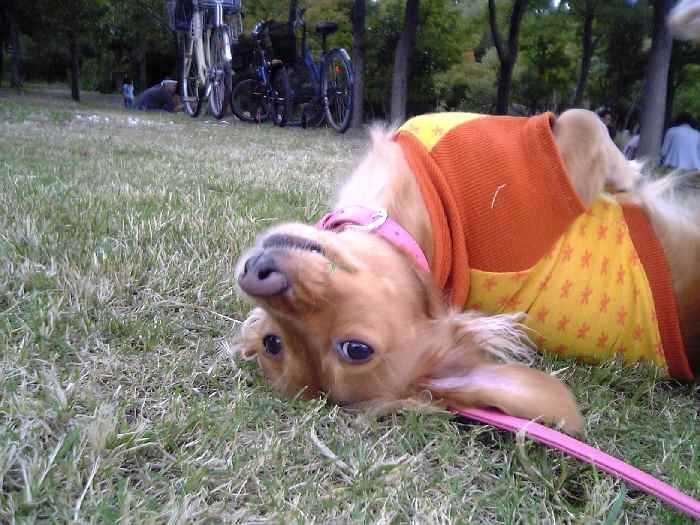 芝生にうっとりのまりんちゃん♪